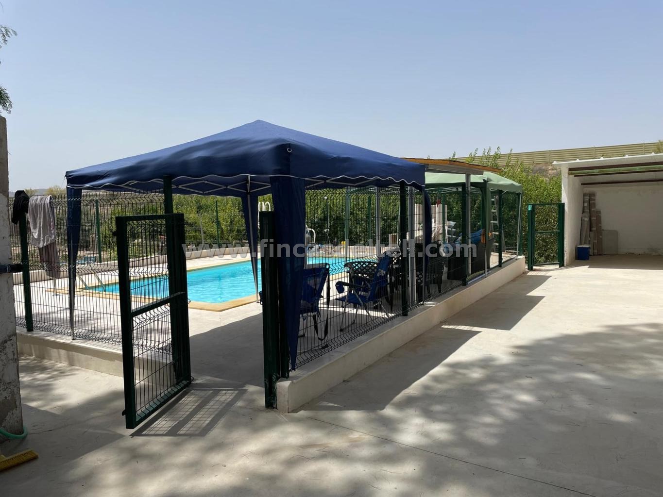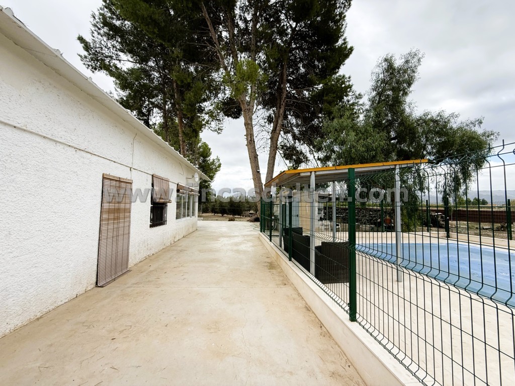 Casa de campo en término de Jumilla. Se encuentra entre Jumilla a 21 km y 22 Km de Cieza. Con buen acceso, todo carretera y toda la parcela vallada. Tiene un porche acristalado que a su vez hace de salón, 4 dormitorios, 2 salones, cocina, 1 baño, trastero, techado para coche, piscina, y jardín.