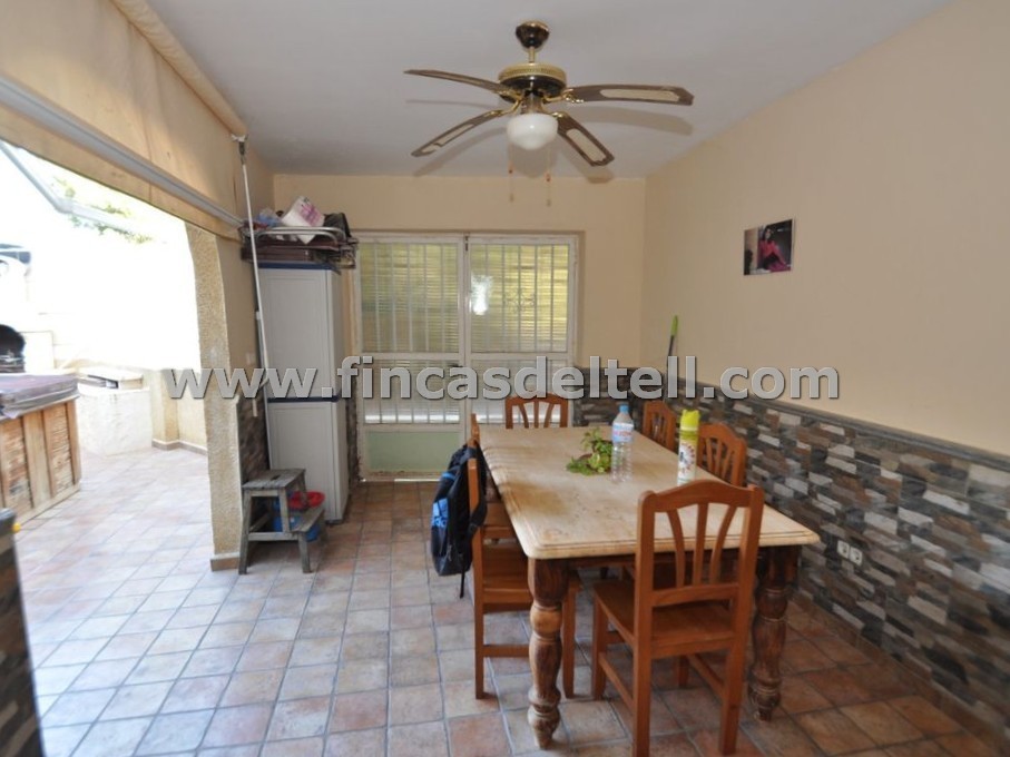 Casa de campo con patio situada en una tranquila y bonita pedanía del término municipal de Monóvar. La casa tiene fachada a 2 calles con orientación norte y sur y está distribuida en 3 plantas ya que la calle de atrás está más baja. Las 3 plantas están comunicadas por una escalera interior. Al acceder a la vivienda desde la fachada principal (norte), nos encontramos con un hall de entrada, 1 dormitorio con armario empotrado, una zona de paso con escalera que comunica las 3 plantas y 1 salón con puerta de acceso a la terraza (sur). La planta alta tiene 2 dormitorios con armarios empotrados y 1 baño. Y la panta con acceso desde la calle de atrás tiene 1 salón, 1 cocina, 1 baño, 1 dormitorio y 1 zona cubierta abierta al patio con barbacoa. Tiene electricidad , agua potable y alcantarillado.