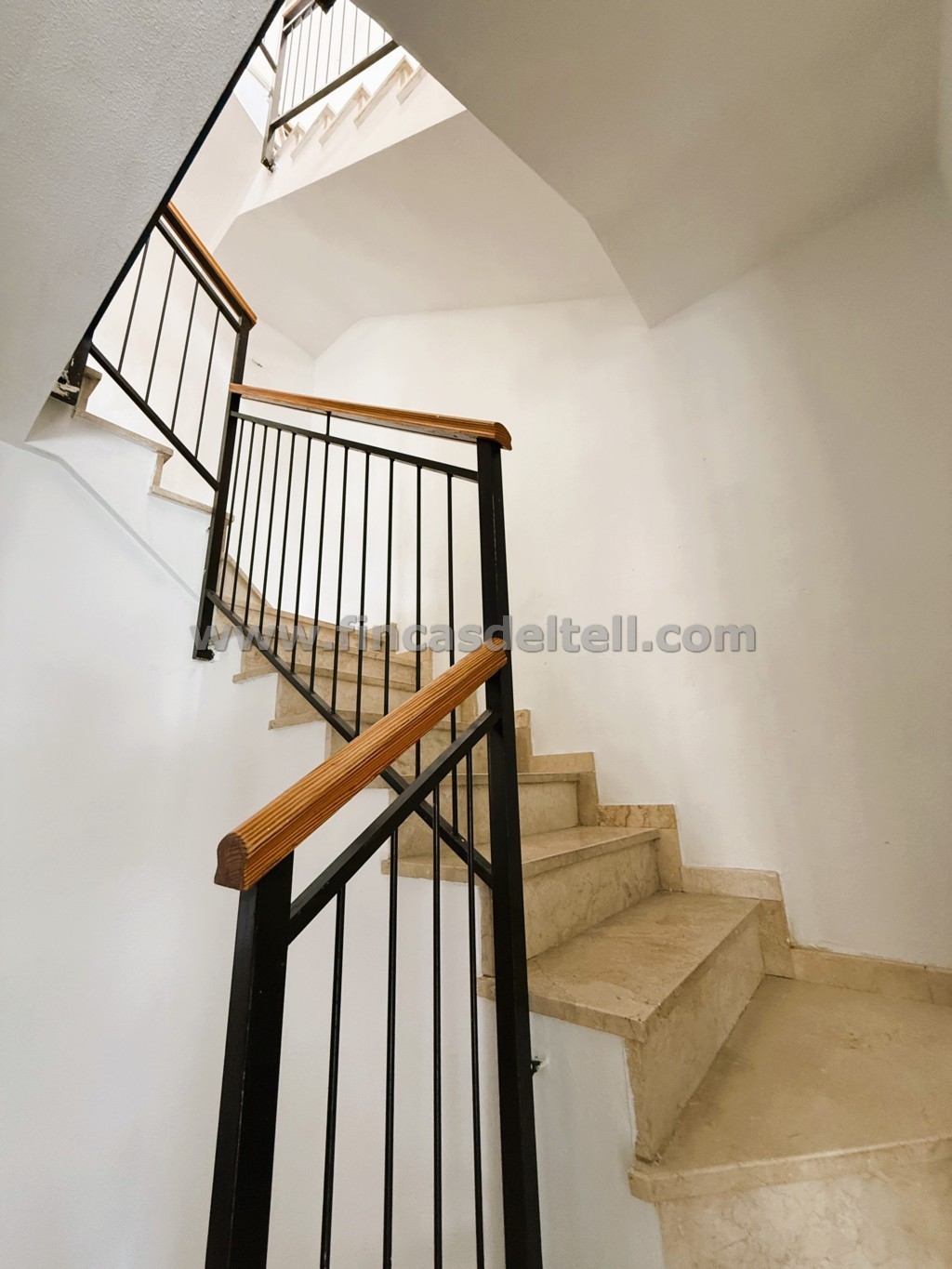 La vivienda consta de planta baja más 2 alturas y tiene una superficie construida de 146 m2 y una superficie útil de 125 m2. La planta baja tiene 1 vestíbulo, 1 salón comedor, 1 baño, 1 cocina, 1 sala de estar. y escalera de acceso a las plantas 1º y 2ª. La primera planta tiene 3 dormitorios, uno de ellos con armario empotrado y otro dormitorio con una pequeña terraza. y 1 baño. La planta segunda tiene una habitación con salida a 2 terrazas.