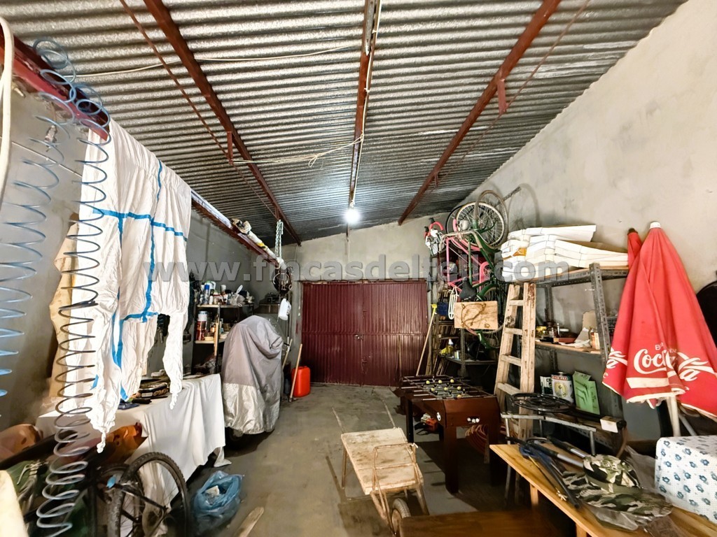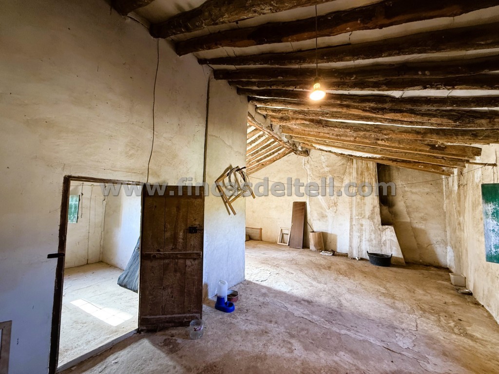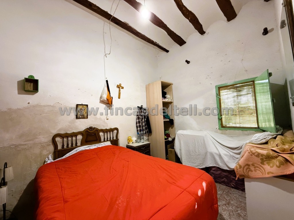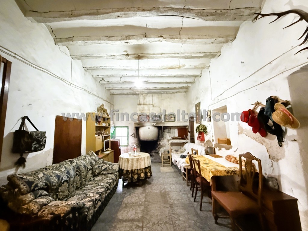 La casa es de planta baja y alta y necesita una reforma. La planta baja tiene 1 vestíbulo, 2 dormitorios, 1 salón comedor con antigua chimenea de leña, 1 despensa, y otras dependencias. Arriba tiene una única estancia grande. En la parte de atrás hay un patio corral con gallinero y otras construcciones para animales. Junto a la casa hay una garaje almacén y en frente de la casa hay un terreno vallado que pertenece a la casa.