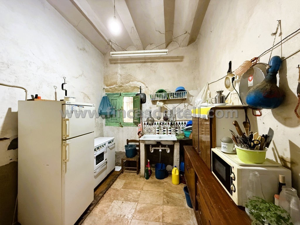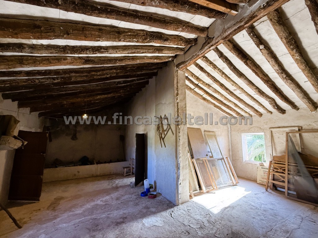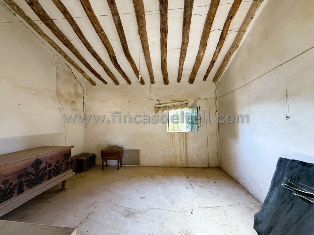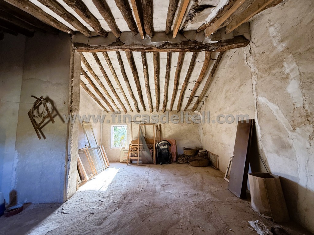 La casa es de planta baja y alta y necesita una reforma. La planta baja tiene 1 vestíbulo, 2 dormitorios, 1 salón comedor con antigua chimenea de leña, 1 despensa, y otras dependencias. Arriba tiene una única estancia grande. En la parte de atrás hay un patio corral con gallinero y otras construcciones para animales. Junto a la casa hay una garaje almacén y en frente de la casa hay un terreno vallado que pertenece a la casa.