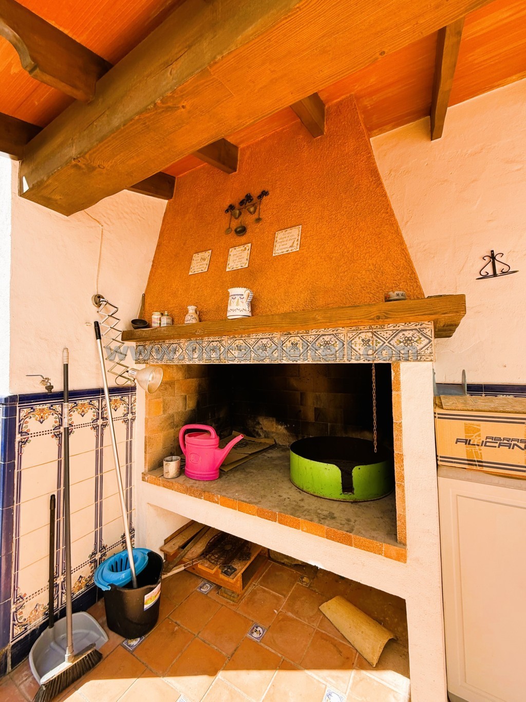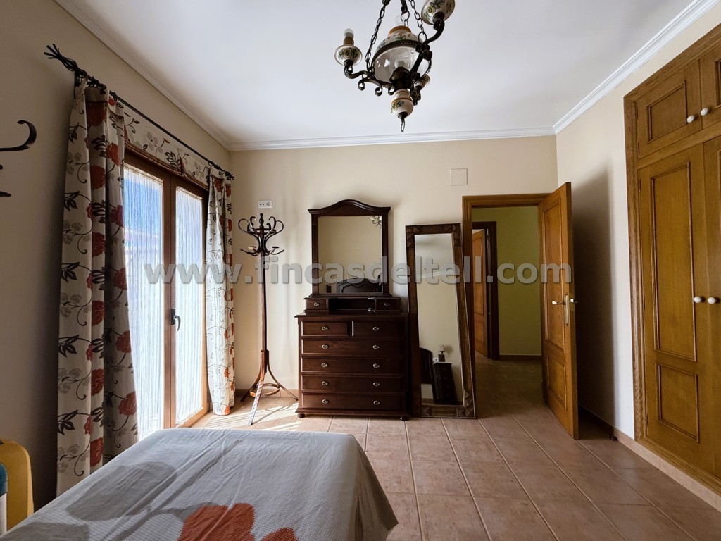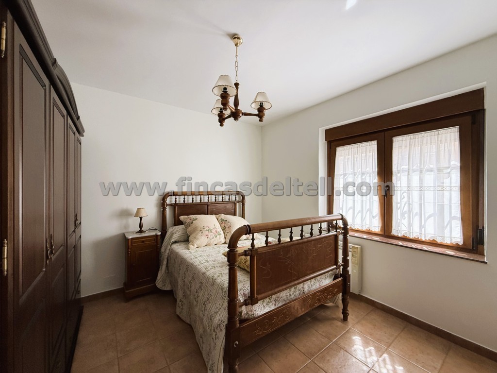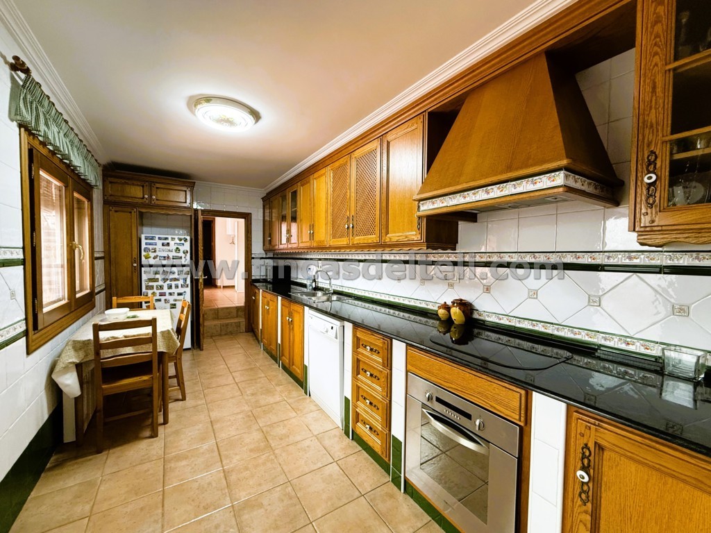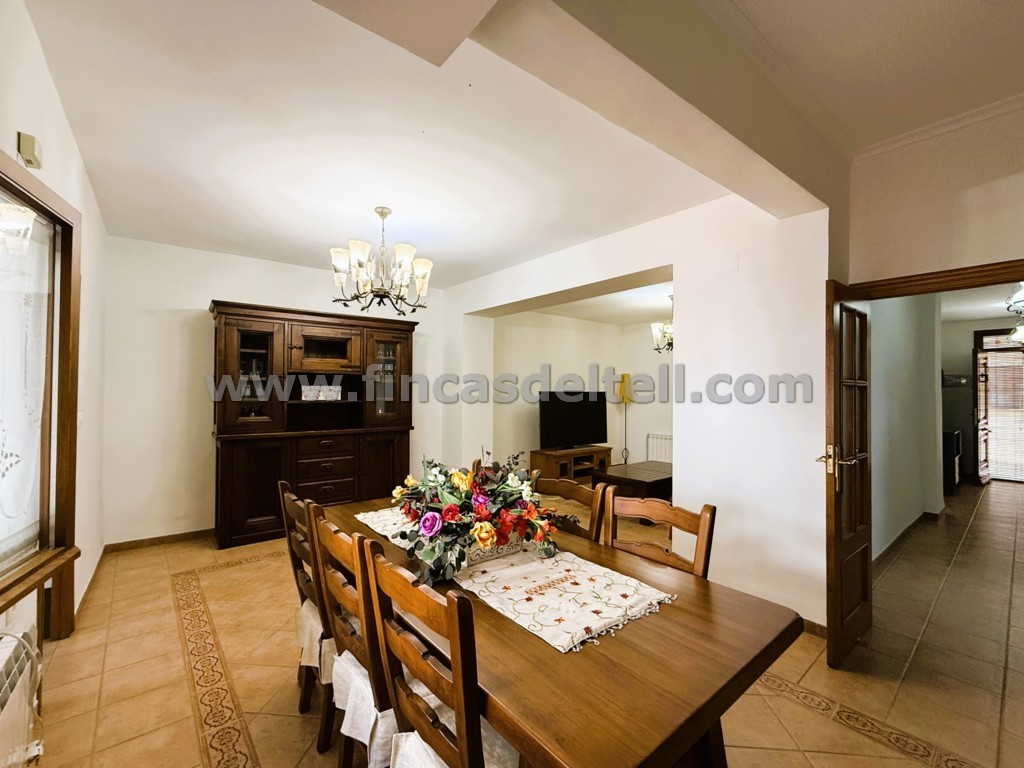 En la planta baja tiene el garaje, 1 vestíbulo, 1 dormitorio, 1 aseo, 1 salón comedor, 1 trastero que aprovecha el hueco de la escalera, 1 cocina amplia, cuarto de la colada, 1 baño grande, un patio con barbacoa de obra cubierta, lavadero y al final del patio hay otra estancia muy fresca (comedor o zona de estar) y una escalera de acceso a una amplia buhardilla y un cuarto trastero. La planta alta tiene 4 dormitorios, 1 baño, 1 cuarto trastero y 2 balcones que dan a la calle.
