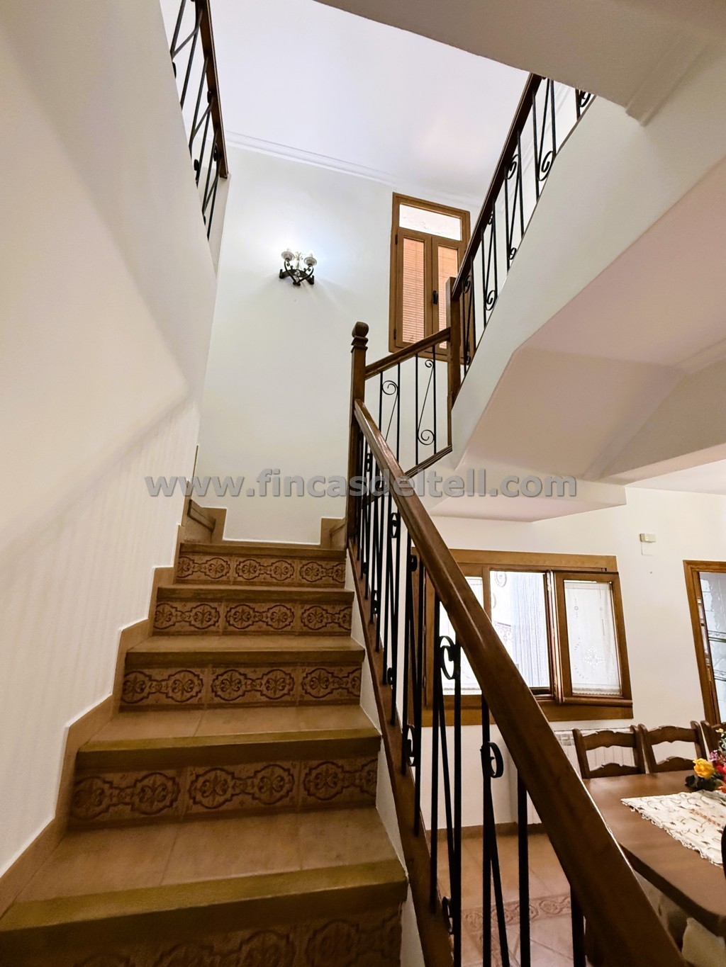 La vivienda es de planta baja y alta con la fachada principal orientada al sur y tiene garaje y patio.