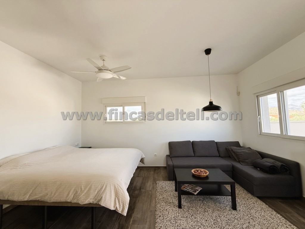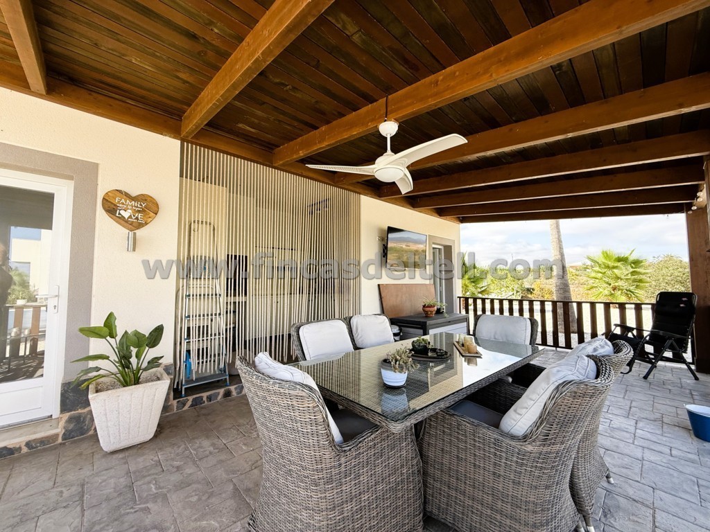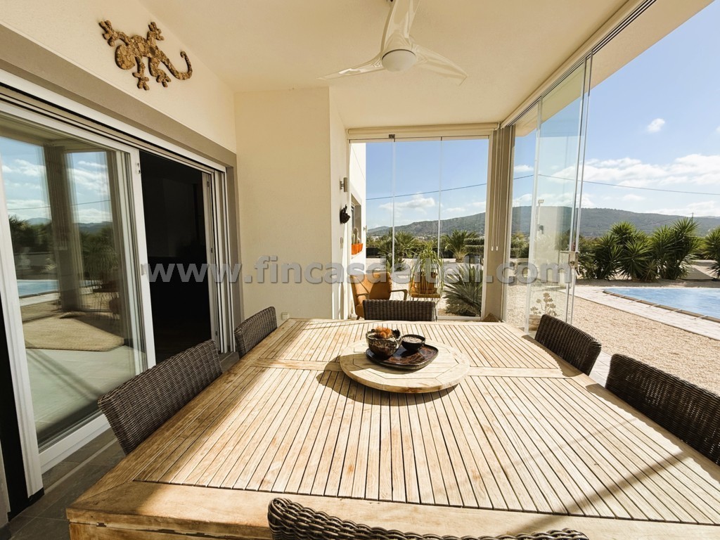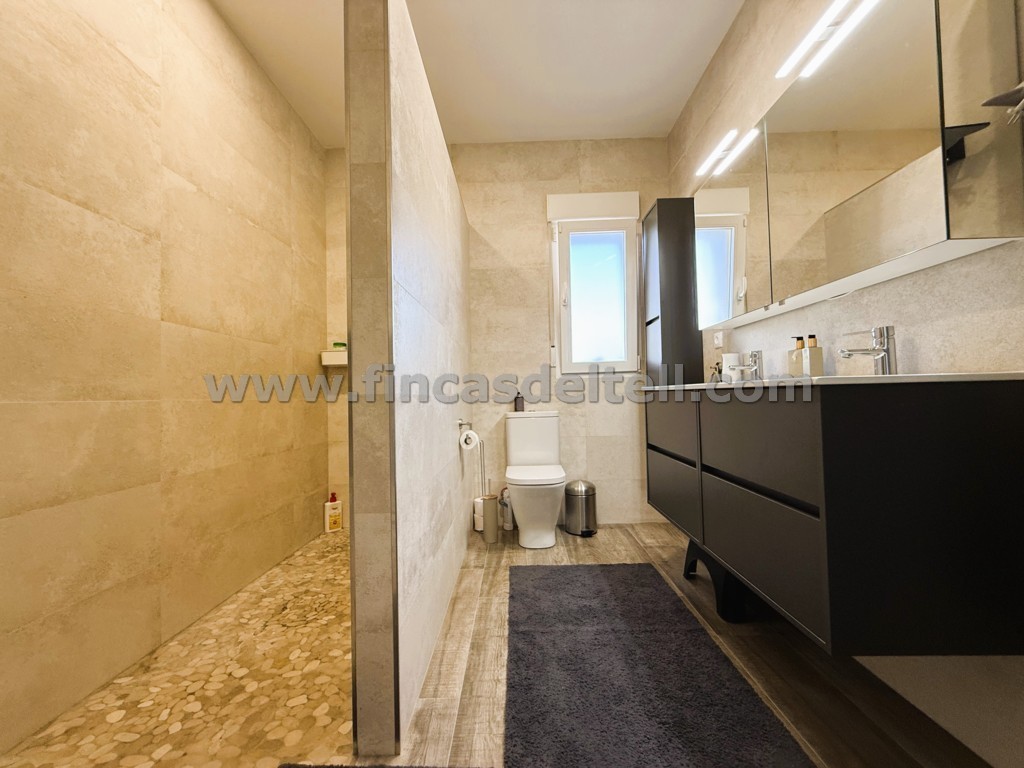 La vivienda en la planta baja tiene 1 salón comedor con cocina americana, 3 dormitorios dobles, 2 de ellos con armarios empotrados, 2 baños y un porche acristalado que sirve de comedor de invierno. La planta alta tiene un apartamento independiente con una gran terraza, salón/dormitorio/cocina básica y 1 baño. Ya en el exterior tiene una gran piscina, otra edificación con una cocina de verano con barbacoa, 1 baño y amplio porche cubierto con espacio para mesa y sillas. También tiene garaje, un lavadero y un bonito jardín muy bien cuidado. La vivienda tiene la instalación de aire por conducto, una estufa de pellets en el salón, mosquiteras en las ventanas y el apartamento de arriba tiene un aparato de aire acondicionado.