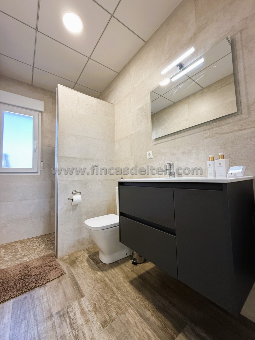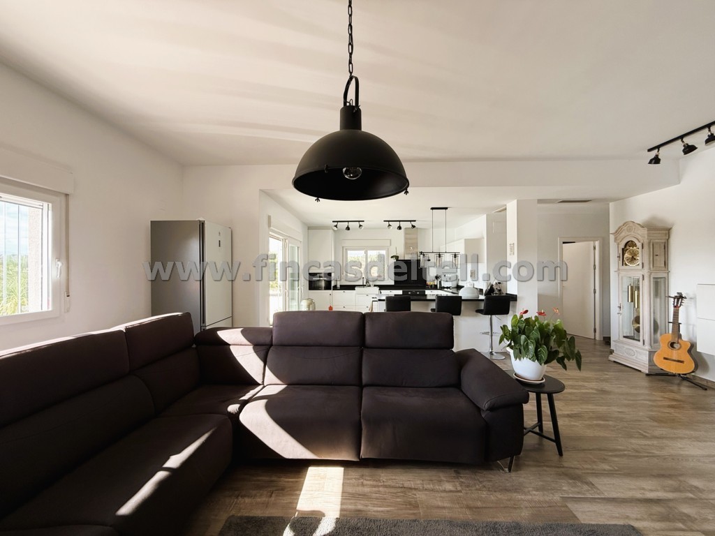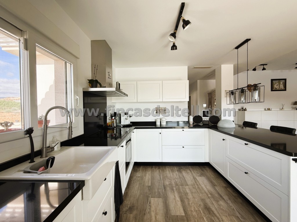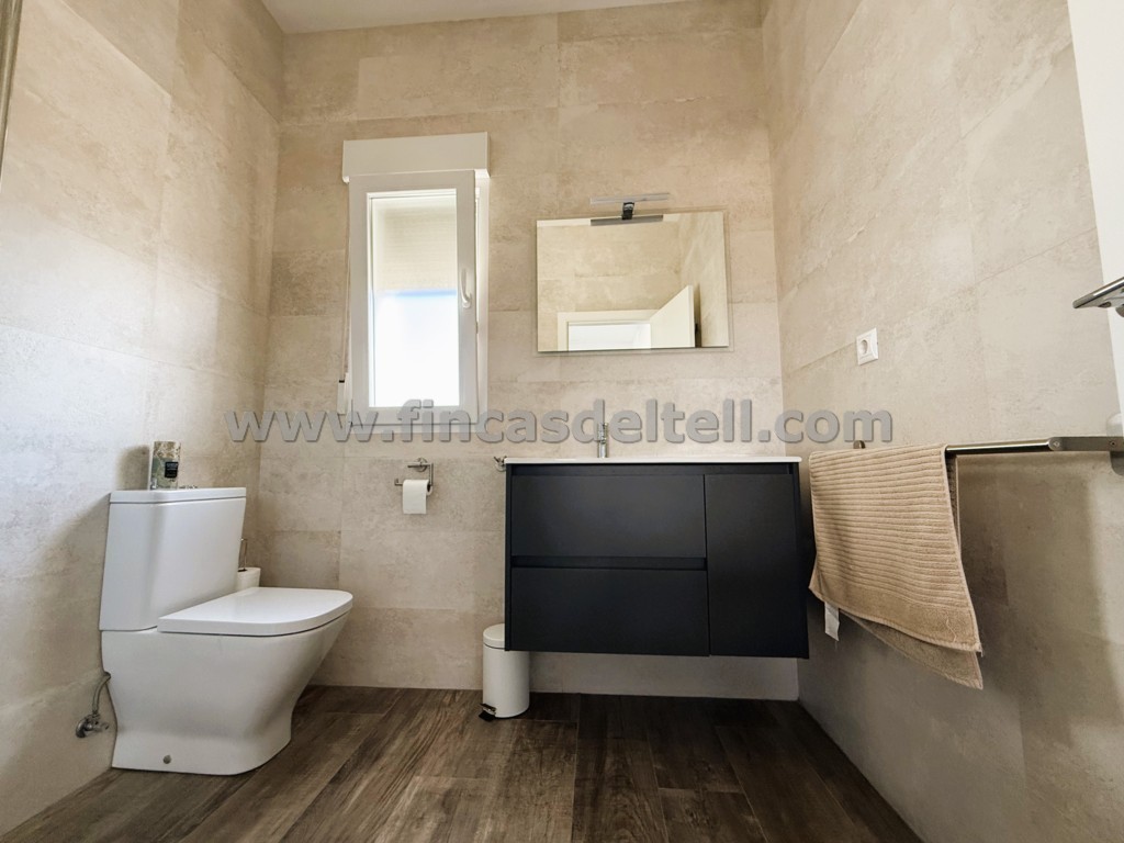 La vivienda en la planta baja tiene 1 salón comedor con cocina americana, 3 dormitorios dobles, 2 de ellos con armarios empotrados, 2 baños y un porche acristalado que sirve de comedor de invierno. La planta alta tiene un apartamento independiente con una gran terraza, salón/dormitorio/cocina básica y 1 baño. Ya en el exterior tiene una gran piscina, otra edificación con una cocina de verano con barbacoa, 1 baño y amplio porche cubierto con espacio para mesa y sillas. También tiene garaje, un lavadero y un bonito jardín muy bien cuidado. La vivienda tiene la instalación de aire por conducto, una estufa de pellets en el salón, mosquiteras en las ventanas y el apartamento de arriba tiene un aparato de aire acondicionado.