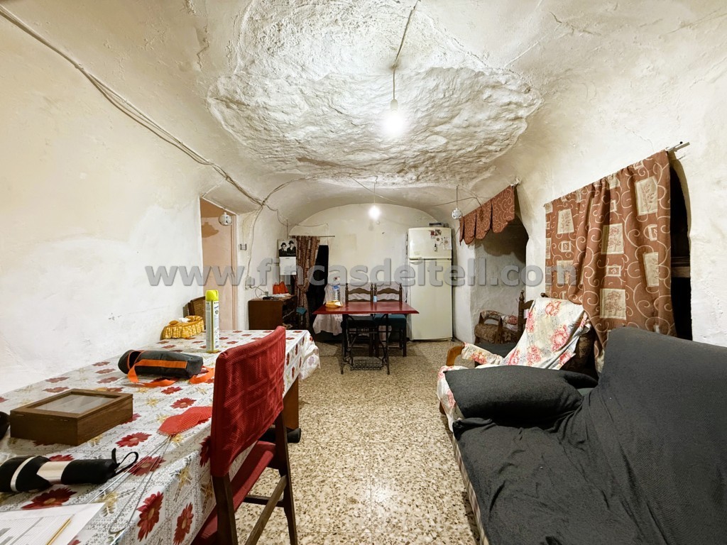 En venta cueva a pocos km de Pinoso. Con orientación Este y una parcela de 300 m2 aproximadamente. Tiene plantados varios pinos y frutales. También un jardín de 70 m2 que da acceso a la vivienda. Con 3 dormitorios, cocina, salón, 1 aseo, 1 baño. Con luz y agua potable. El total de superficie es de 458 m2 y construidos 139 m2.