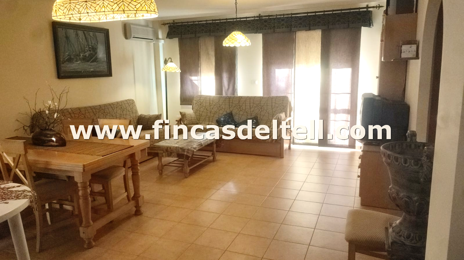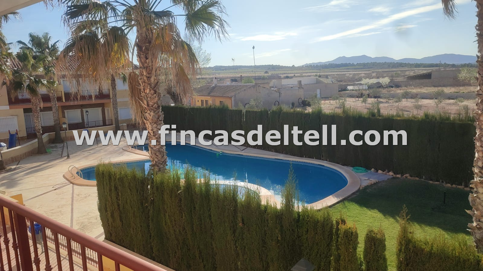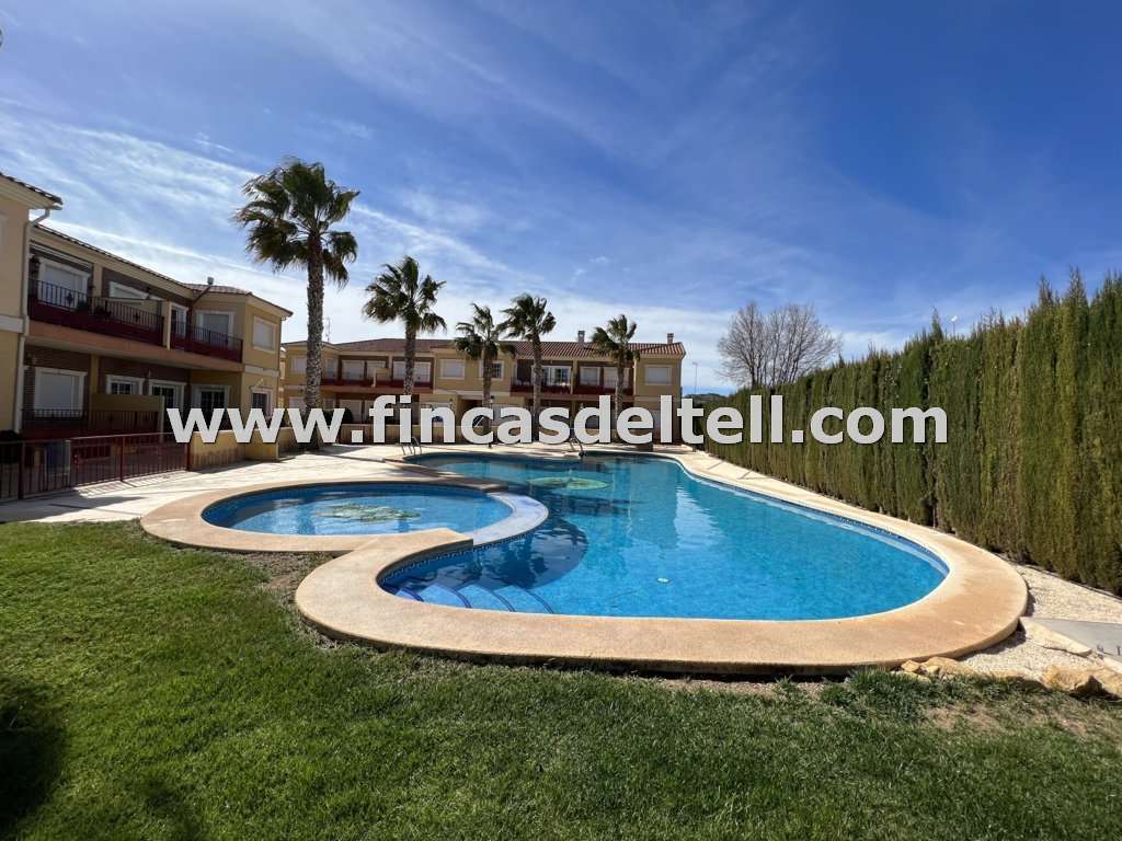 Semi-detached flat with swimming pool in a residential area between Pinoso and Monovar. The property has 2 bedrooms, 2 bathrooms, living room, kitchen, laundry room, garage and storage room. The swimming pool, playground and garden are communal. Includes furniture and white goods.