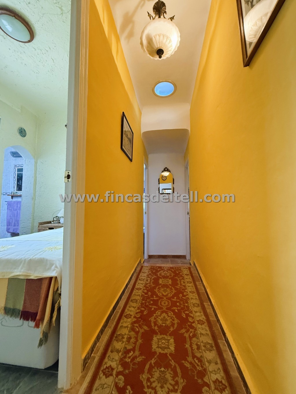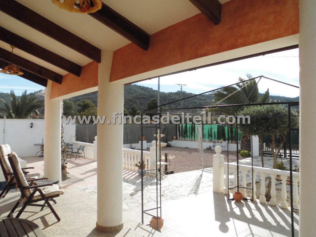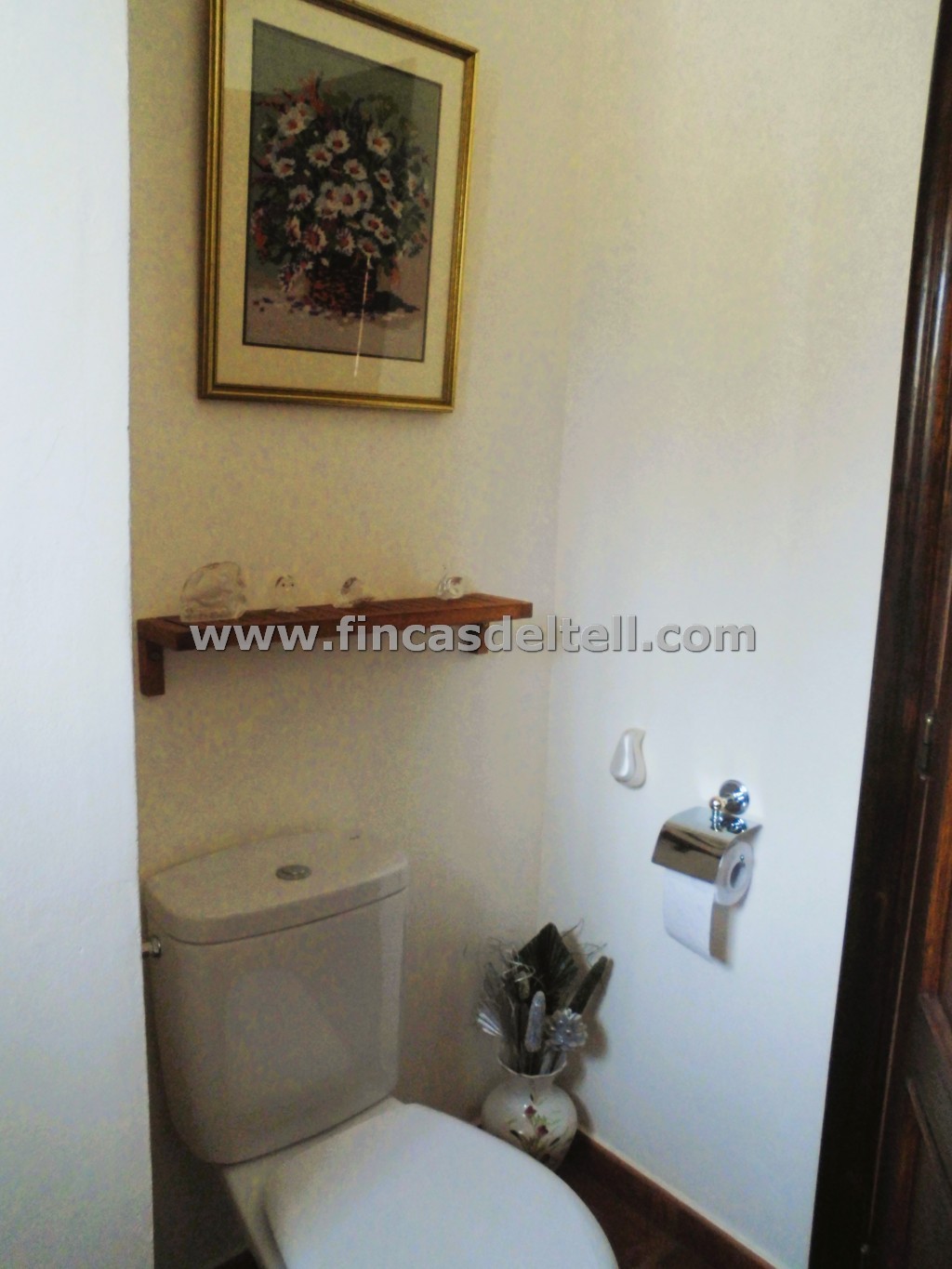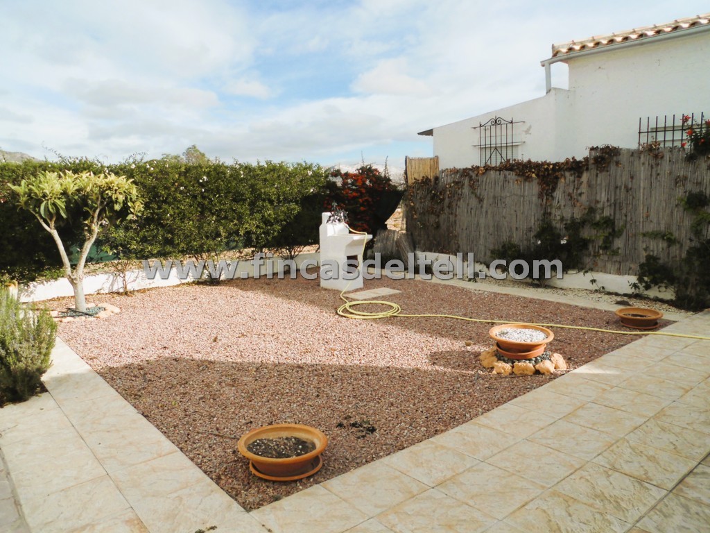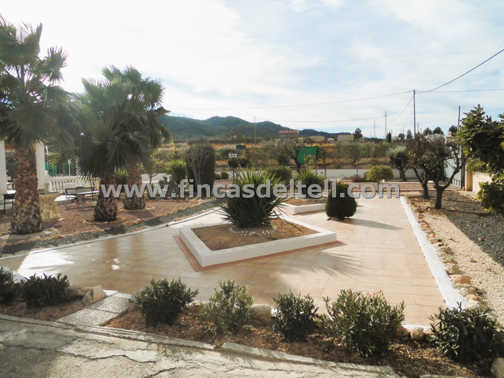 The single-storey house has a large porch overlooking the garden, 1 spacious kitchen with a wood-burning stove and dining area, 1 living room with a wood-burning fireplace, 3 bedrooms, 2 bathrooms and 1 toilet. Next to it is a storage room used as a laundry room and storage room and a small swimming pool, and there is also a garage. It has a constructed area of 181 m2 including the swimming pool.