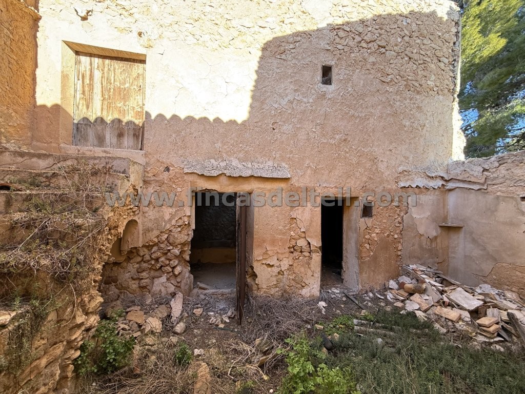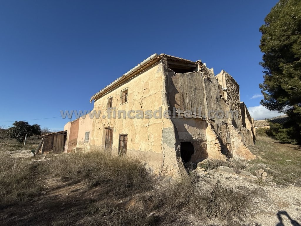 House with plot located in the municipality of Monovar. The house is in a state of disrepair and the plot is located opposite. With a built area of 226 m² and a plot size of 795 m². No electricity or water.