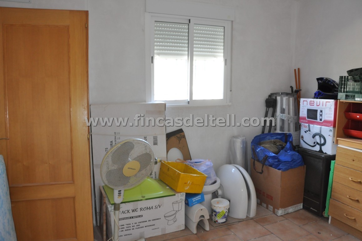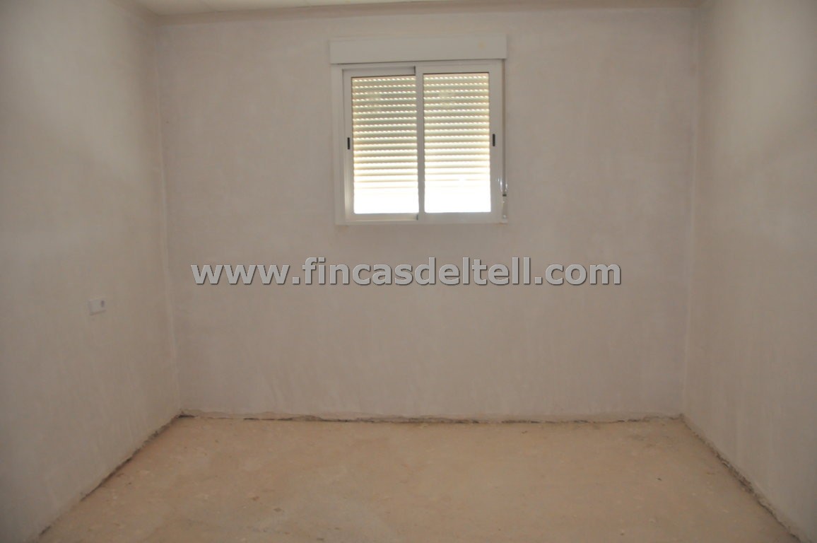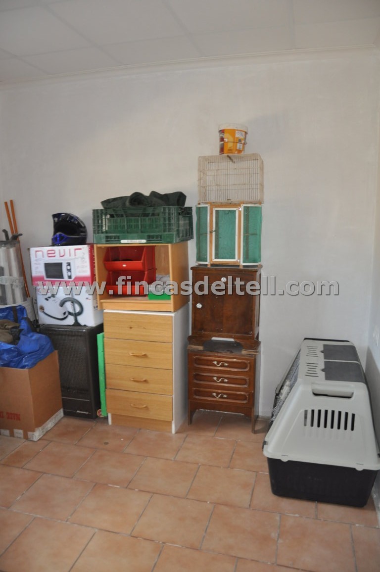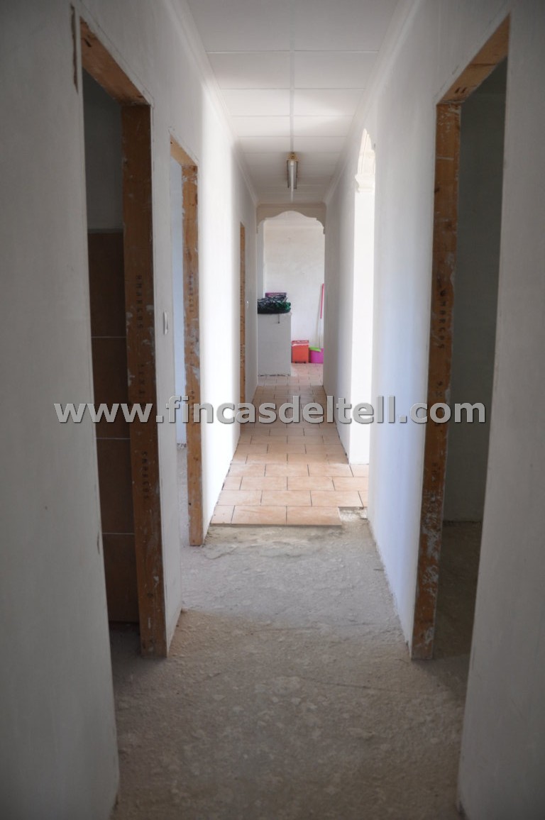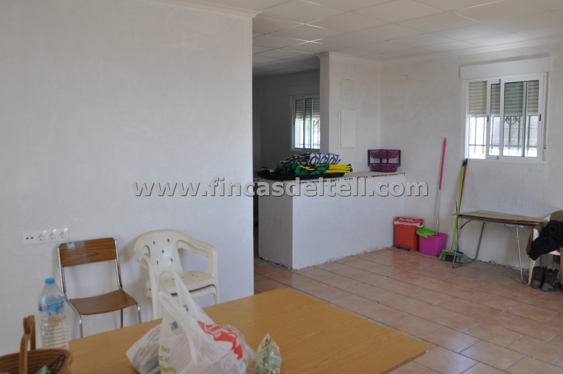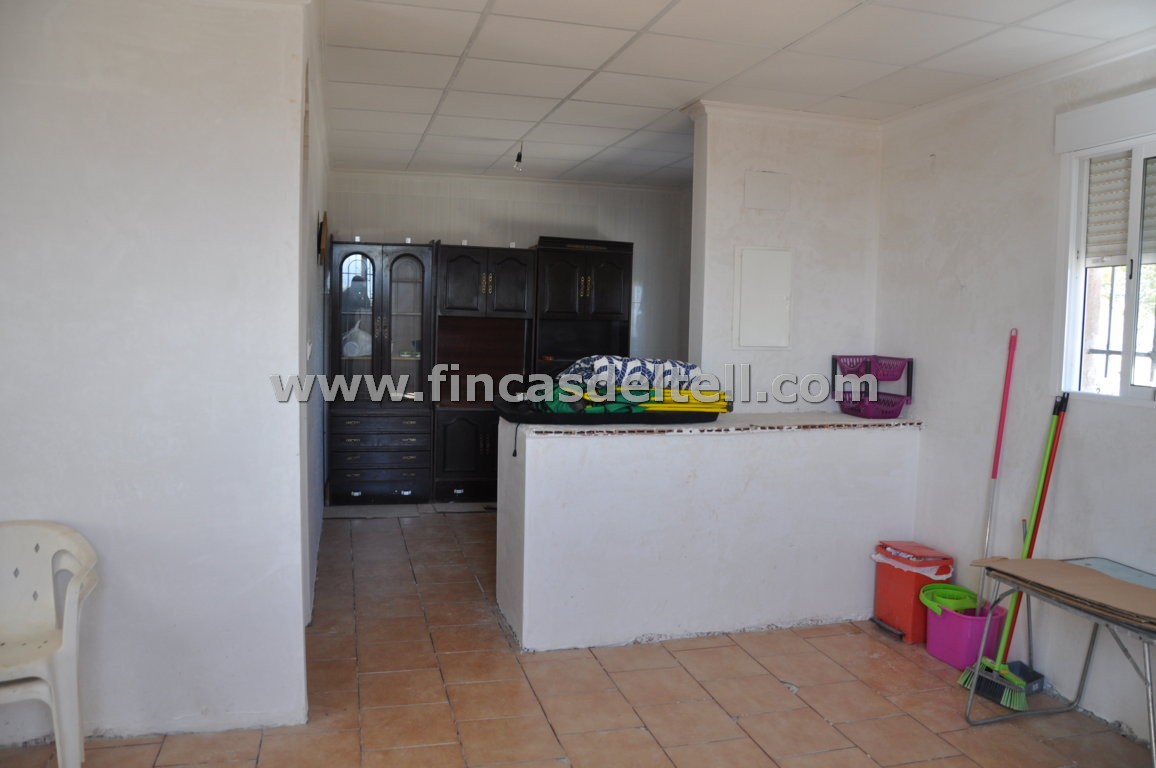 The land has 20.538 m2, of which about 10.000 m2 are fenced and planted with almond trees and the rest is uncultivated and unfenced. The house has 100 m2 and has 3 bedrooms, 1 bathroom, kitchen/living room with fireplace and a garage of 38 m2. There is another fenced area with a dog house. It has electricity and mains water.