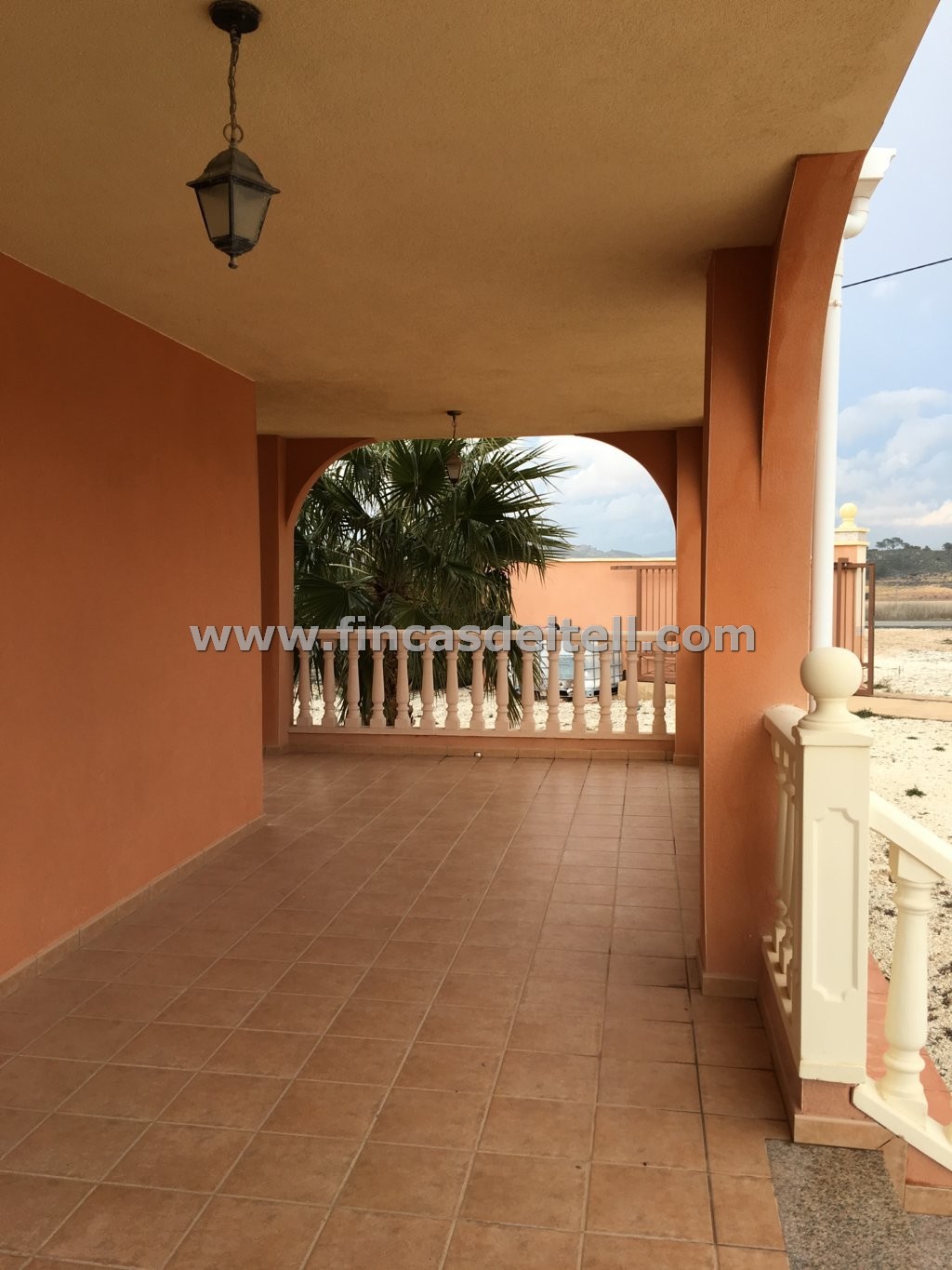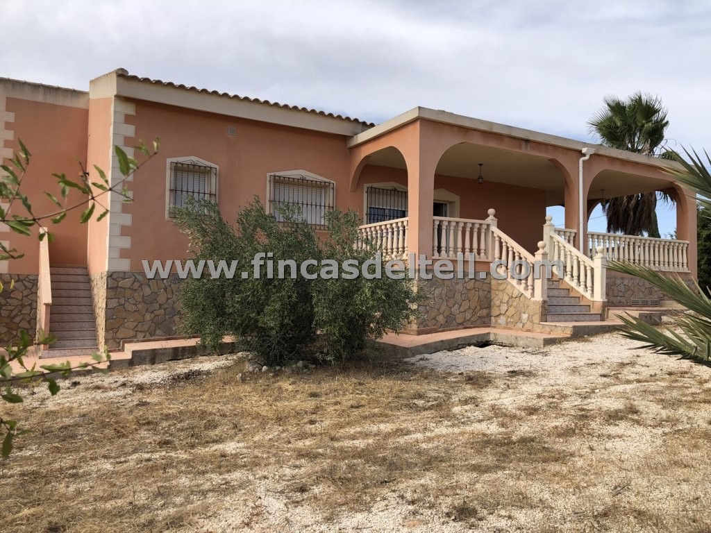 The plot on which the house is located measures 9,382 m², with approximately 1,800 m² fenced by a masonry wall and a gate at the front, and the remainder enclosed by a metal fence and hedge. There is an area with olive, almond, and pomegranate trees.