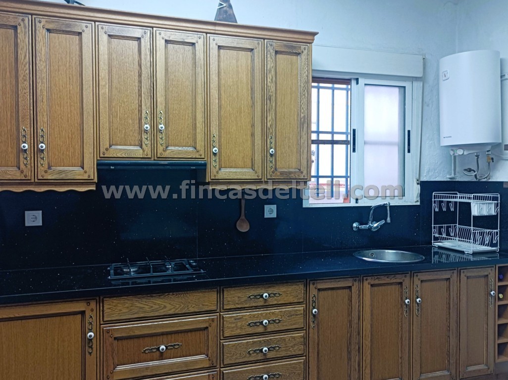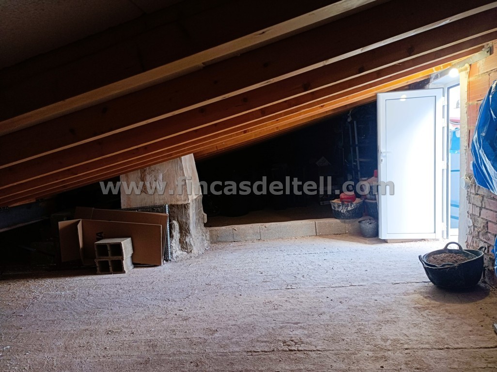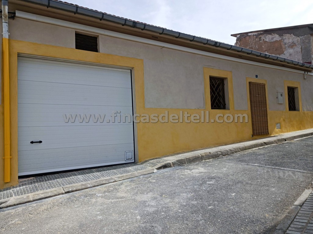 Village house for sale. The property is a single storey with a garage for 2 cars, a 40 m2 patio and a 54 m2 loft. It has 2 bedrooms, a kitchen and 1 bathroom. It has 9 solar panels, each with a capacity of 525 kW, with batteries of 5 kW each. The garage door is automatic. The attic loft has an air chamber. It has a pellet stove and fireplace. The façade has been recently renovated. Just a 2-minute walk from the town centre and in perfect condition, ready to move into.