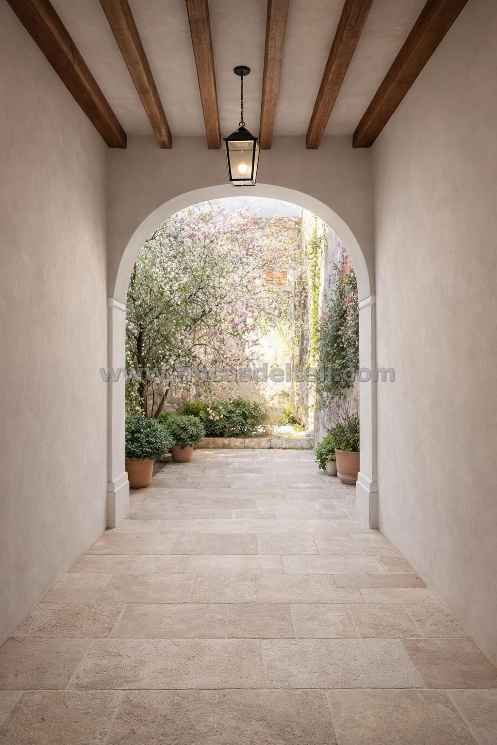 House built in 1920 with typical village architecture. The property retains its original wooden floors, staircase and doors. It has a ground floor and first floor, and a large courtyard and garage. It is in need of renovation but could be turned into a very attractive home. It is south-facing, so it gets plenty of light. Its location in the centre of the village is unbeatable.