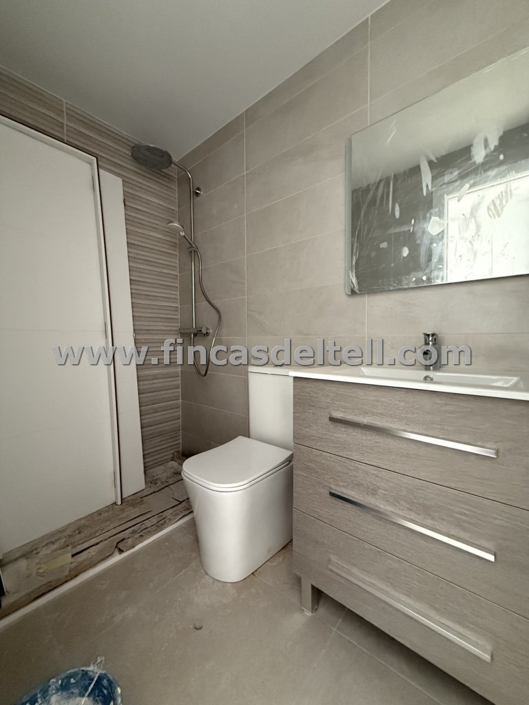 The renovation, using modern materials and with an impeccable finish, includes: new white aluminium windows, white interior doors, grey porcelain floors, smooth walls, fully updated plumbing and electricity, fitted kitchen with ceramic hob, sink, 80-litre electric heater and fully equipped bathroom.