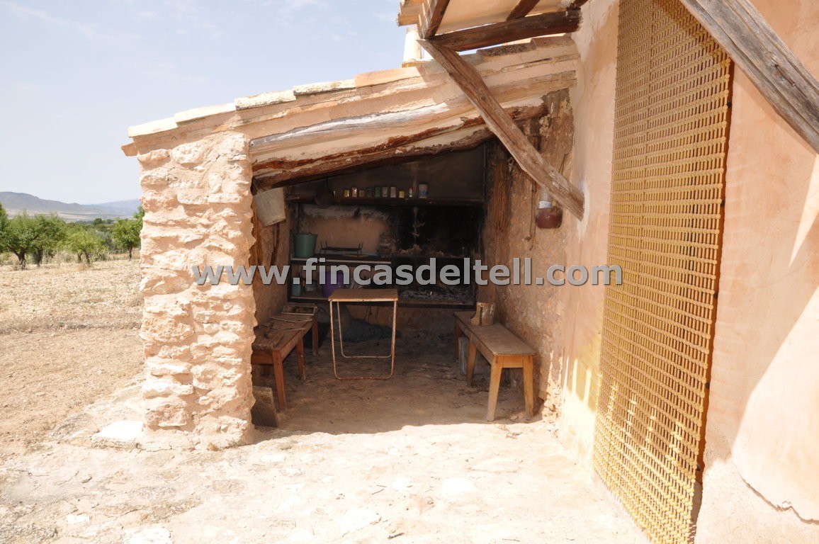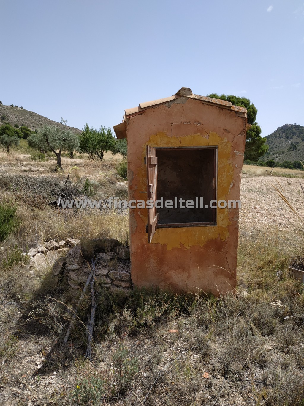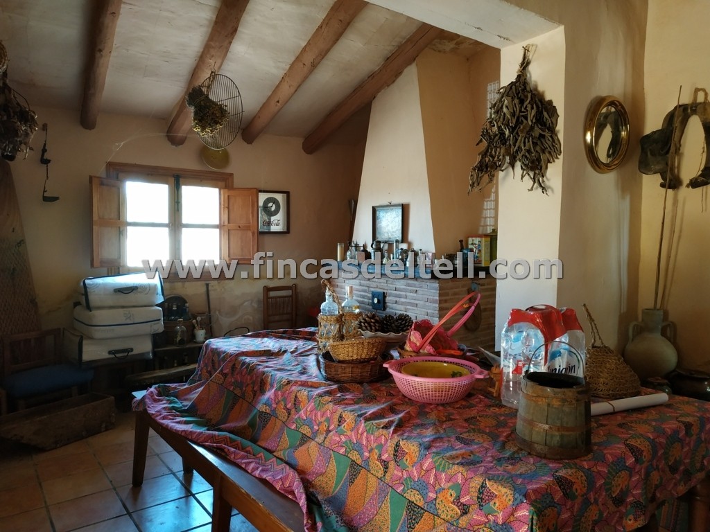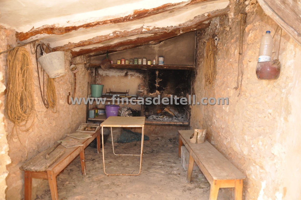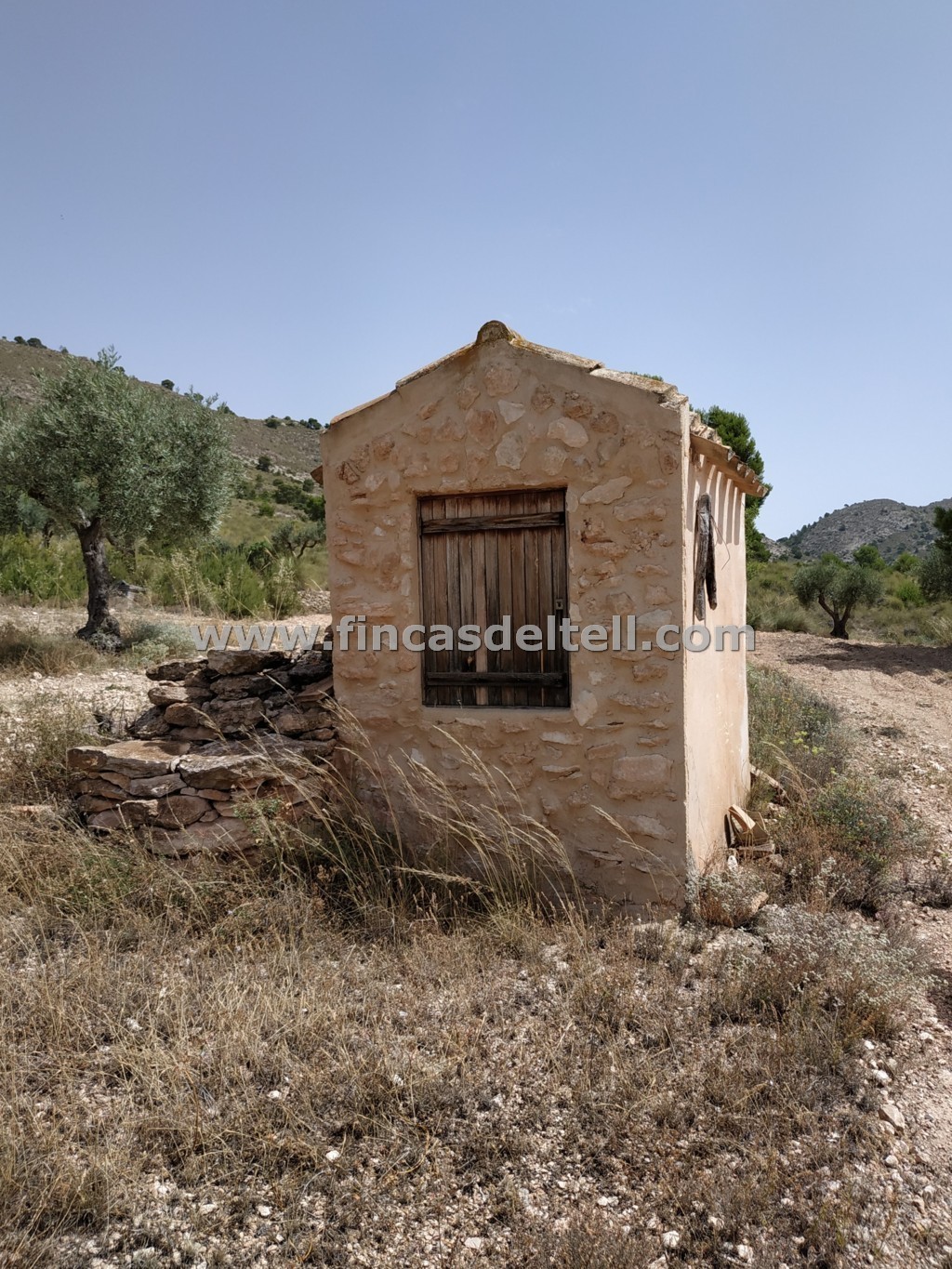 There is a country house that has an entrance, 1 large living room with 2 wood-burning fireplaces and a wood oven, 1 bedroom and another room at the back that could be another bedroom. It has a covered area with a barbecue and there is also a storage room. The property has 2 old wells, one of them is quite large and well preserved and the wells could be used as water tanks. In this area there is no drinking water or mains electricity since the property is in an isolated area, next to the mountain, but you can enjoy spectacular views. In the subsoil of the land if there is water according to a sounding study and a well can be made to extract the water and use it on the property.