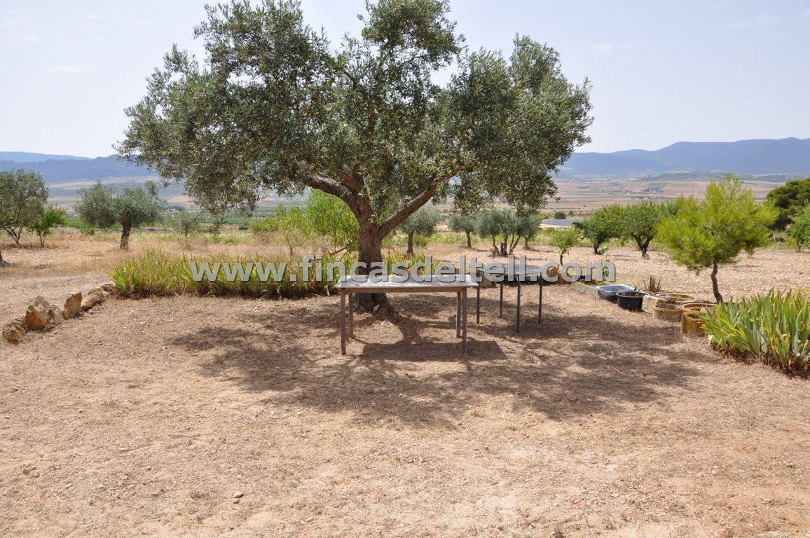 This finca is located in the Murcia region and is close to the popular town of Yecla. The location is very peacful and has specatular views. The Finca has 74,505 m2 of land and its a mixture of olives, almond tres and vineyard.