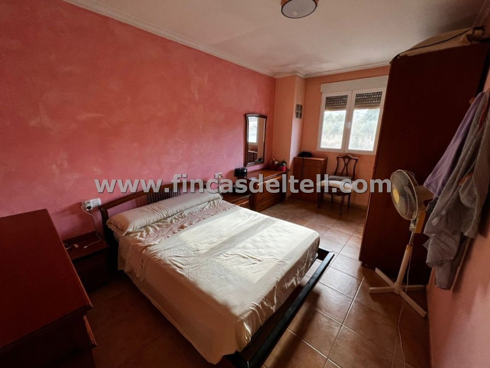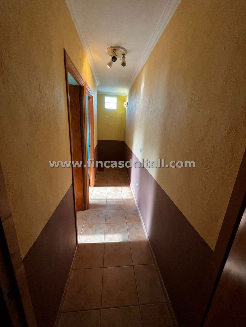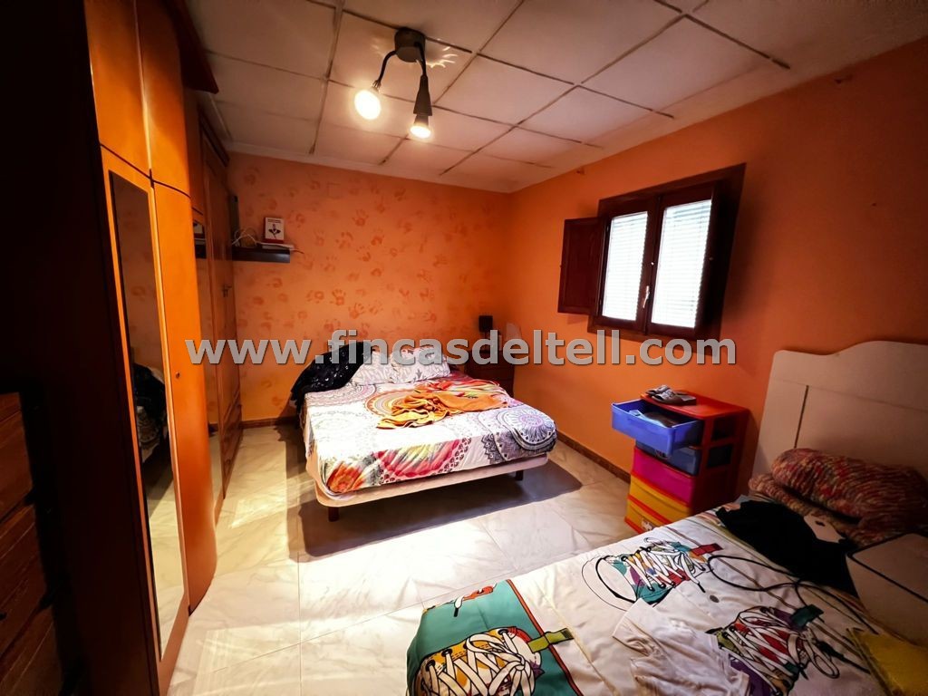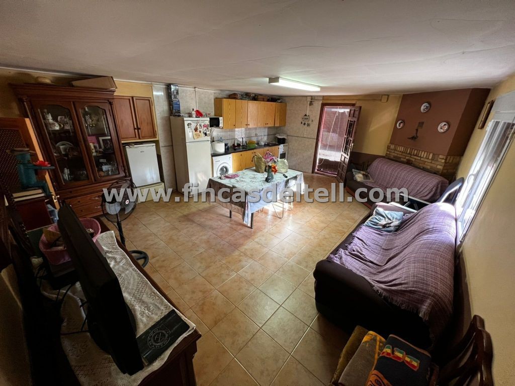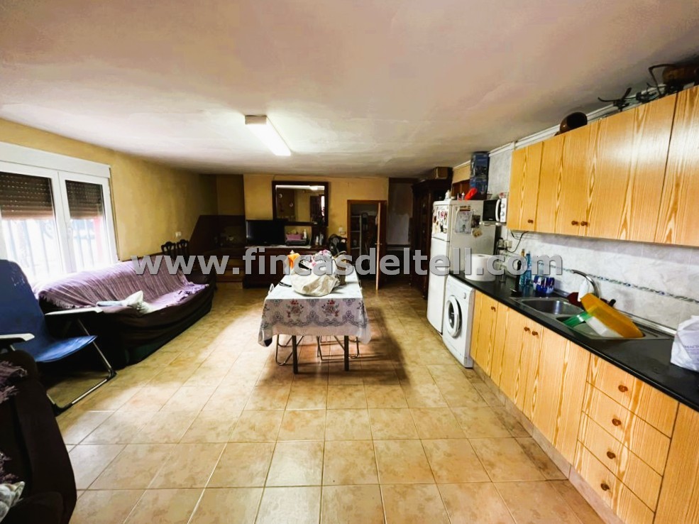 The house has a ground floor and first floor and comprises a large living room-kitchen with a wood-burning fireplace, 4 bedrooms, 1 bathroom, patio, storage room, warehouse, garage and barbecue.