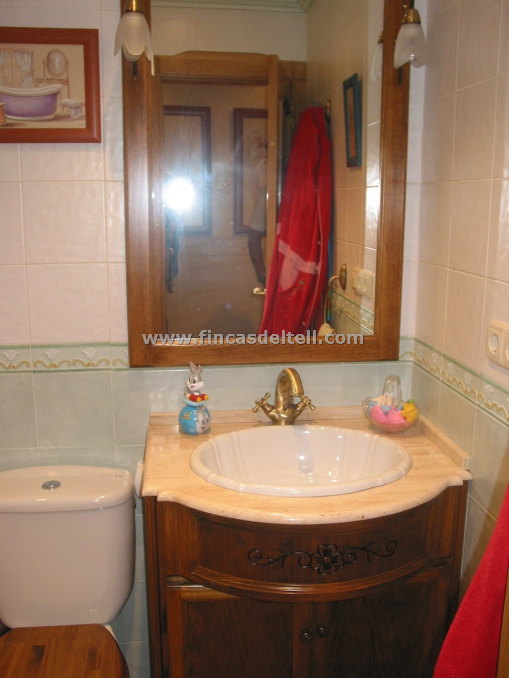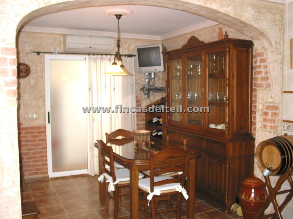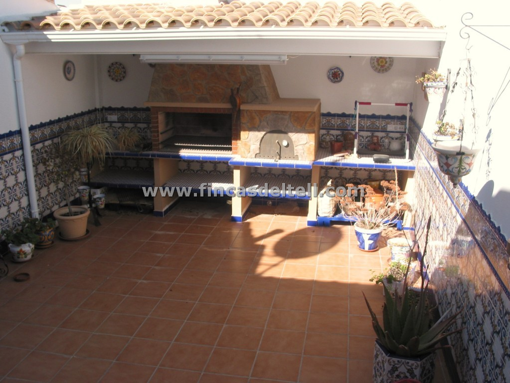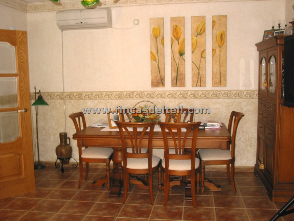 Ground-floor house in Pinoso with a large patio. The house has 3 bedrooms, 2 bathrooms, living room, kitchen-dining room and a garage. The house has oil central heating, air conditioning, a barbecue, and a wood-burning oven.